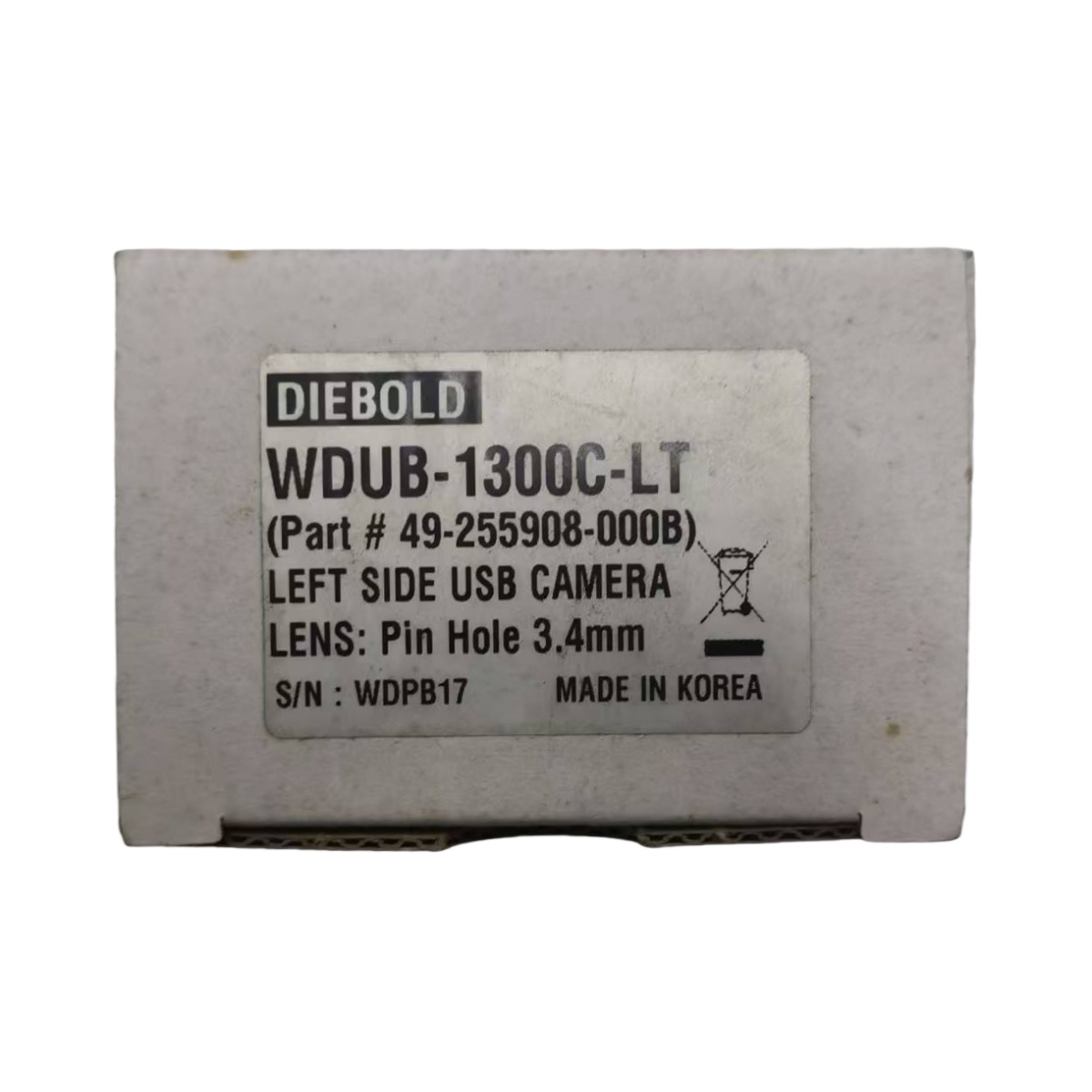 (Numéro de pièce : 49255908000B, S/N : WDPB17) est conçu avec un CONNECTEUR USB CÔTÉ GAUCHE, adapté aux systèmes de guichets automatiques Diebold nécessitant une intégration de caméra latérale gauche.